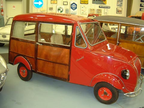 This model 200-C was an estate car with a higher front body and wood side panels. Able to combine business and pleasure, it had a bench at the rear and seated four persons. There were two vent windows and the windscreen had a single wiper at the top. The 8" wheels and the 9hp motor were the same as the standard model.
