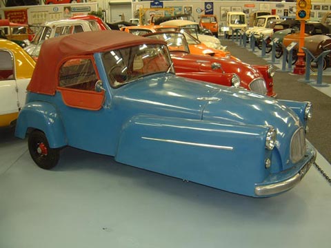 The earlier Mark "C" models retained the Villiers 6E engine but, in July 1953, this was replaced by Villiers 8E of the same capacity (but a later development). At the same time a new method of chain adjustment was introduced and some other minor changes incorporated. The facia panel, for example, now extended the full width of the car and eliminated the glove pocket, for which was substituted a handle grip to assist passenger entry and exit, and a manufacturers badge. Both the 2-seater and 4-seater were fitted with a hood as standard, although a moulded fibreglass hardtop was subsequently made available for "saloon" conversion. On some models fibreglass construction was also used for the rear wings and bonnet top, although the latter feature was not continued.