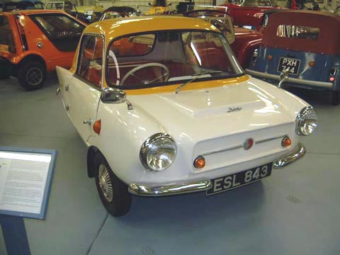 The 324cc Villiers engine ran backwards for reverse, à la Messerschmitt, and the front suspension was Dubonnet-type independent. Sold both as a coupe and a convertible the Frisky Sport was able to touch 65 mph. The name was appropriate for its lively performance and delightful styling.