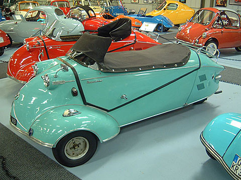 Messerschmitt cabin scooters were built by RSM under the watchful eye of Professor Willy himself and proudly carried the Messerschmitt symbol, the Augsburg eagle, on the nose and throughout the car.