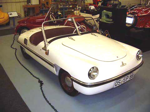 The attractively styled Spatz was quite popular. It was one of the many creations of the engineer and fiberglass promoter, Egon Brutsch, who sold the license for his 3-wheeled "Type 200", alias Spatz, to the machine tool company Alzmetall.
